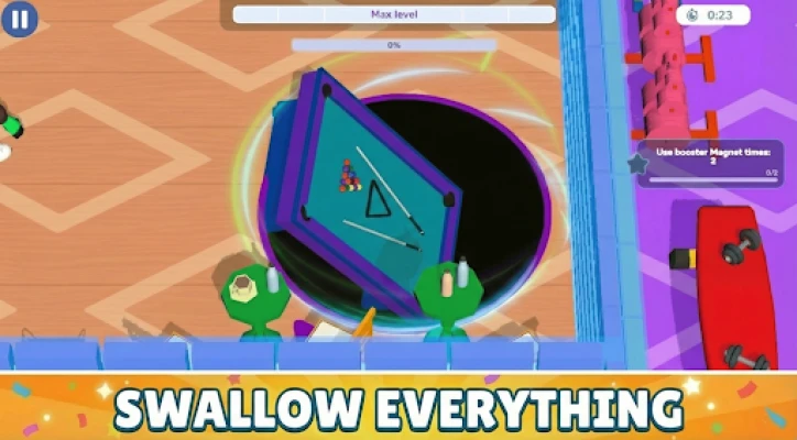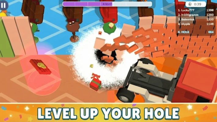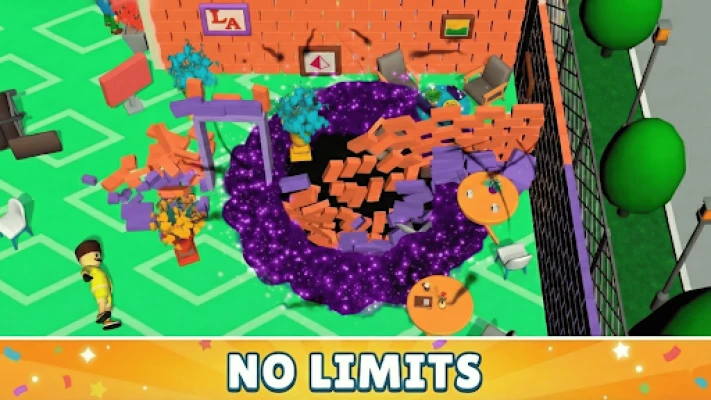 Всяка локация в Holein 2: Eat Bricks е разделена на нива с различни цели, които ще тестват вашите умения. Изпълнявайте задачи, докато вашата дупка расте и отключвайте ново съдържание с напредването си. Тухлените стени не са просто фон – те са ключов елемент от геймплея. Унищожаването им не само отваря нови пътища и зони за изследване, но и генерира стотици тухли, които можете да поглъщате, за да растете по-бързо и да доминирате в стаята. Открийте многобройни игрови режими, включително "Класически" за максимален резултат, "Соло" за бързи предизвикателства и "Елиминиране", където най-слабият отпада.