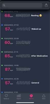 Открийте лесен начин да следите пулса си само с вашия смартфон. Представяме ви надеждно приложение, което превръща камерата на телефона ви в удобен монитор за сърдечен ритъм. Напълно безплатно и без нужда от допълнителни устройства, то ви дава възможност за неограничен запис, за да наблюдавате сърдечната си дейност по всяко време и навсякъде. Дизайнът е интуитивен и лесен за ползване, което прави проследяването достъпно за всеки.