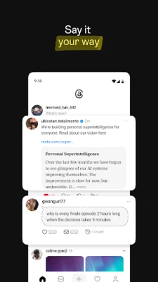 В Threads изразяването на мислите ви е лесно и интуитивно. Започнете нова нишка, за да споделите това, което ви вълнува, и сами определете кой може да отговаря. За тези, които вече са част от Instagram, вратата към Threads е широко отворена – вашето потребителско име и знак за верификация са запазени, а прехвърлянето на последователи става с няколко докосвания. Гмурнете се в отговорите, за да взаимодействате с хумор, коментари и мъдрост от авторите, които харесвате. Вашата сигурност е приоритет: персонализирайте настройките си, управлявайте видимостта на съдържанието и контролирайте кой може да ви споменава. Правилата за общността от Instagram важат и тук, осигурявайки автентично и безопасно преживяване за всички.